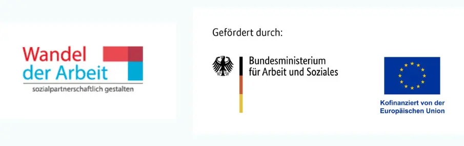 Das Projekt wird im Rahmen des Programms „Wandel der Arbeit sozialpartnerschaftlich gestalten: weiter bilden und Gleichstellung fördern“ durch das Bundesministerium für Arbeit und Soziales und die Europäische Union über den Europäischen Sozialfonds Plus (ESF Plus) gefördert.